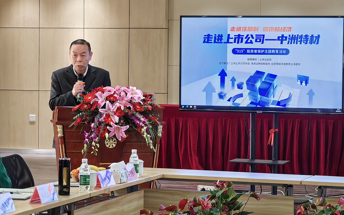 3月14日上午,由上海證監(jiān)局指導(dǎo),上海上市公司協(xié)會、海通證券投教基地、全景網(wǎng)投資者教育上?;芈?lián)合主辦的《走進上市公司——中洲特材》活動在中洲特材總部順利舉行,指導(dǎo)單位、各主辦單位相關(guān)領(lǐng)導(dǎo)及中洲特材高管、證券事務(wù)代表出席此次活動。本次活動共邀請了二十余位投資者走進中洲,調(diào)研了解公司經(jīng)營發(fā)展情況與未來規(guī)劃。