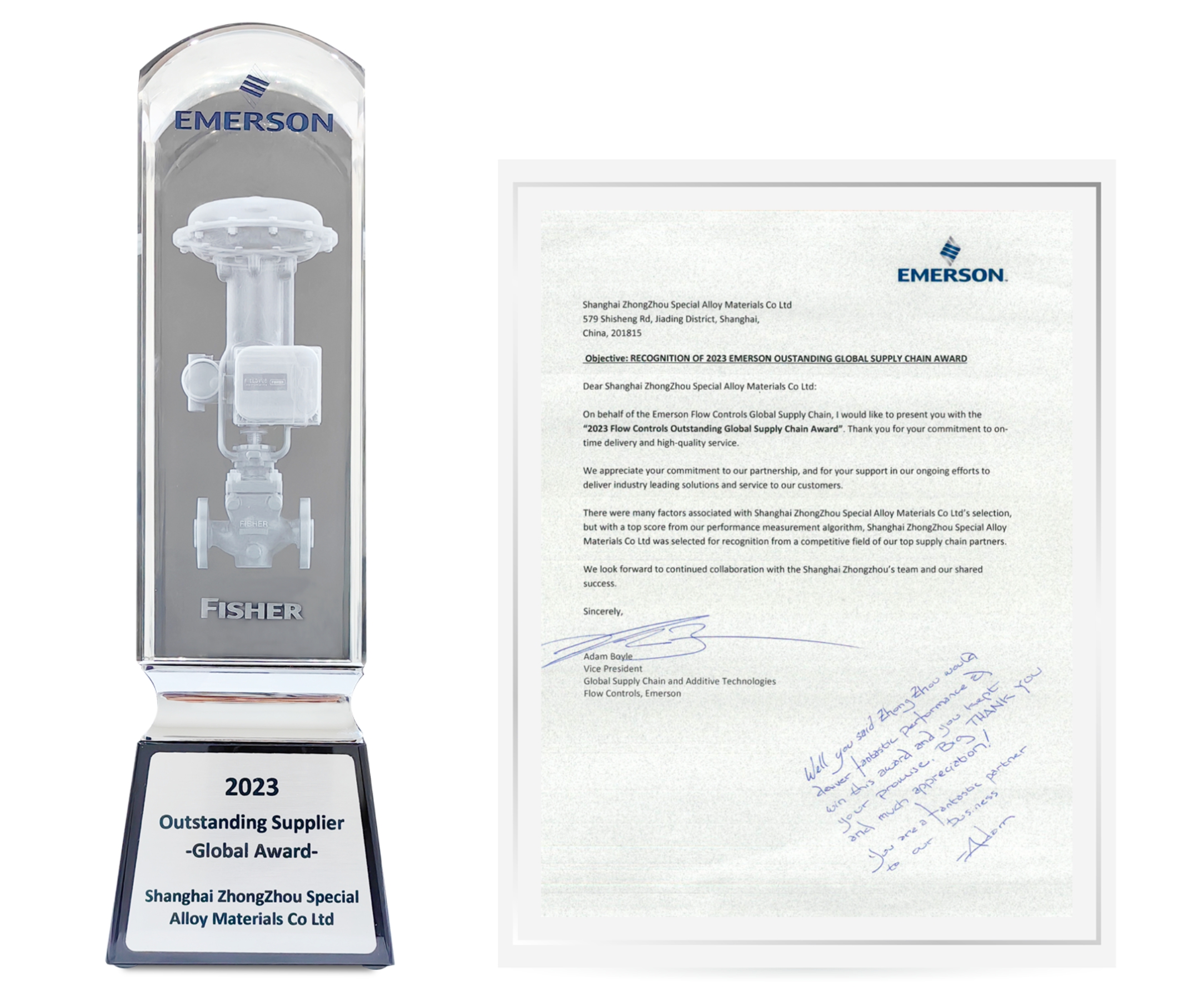 近日,中洲特材憑借實力榮膺由Flow Controls . Emerson頒發(fā)的“全球杰出供應鏈獎”。