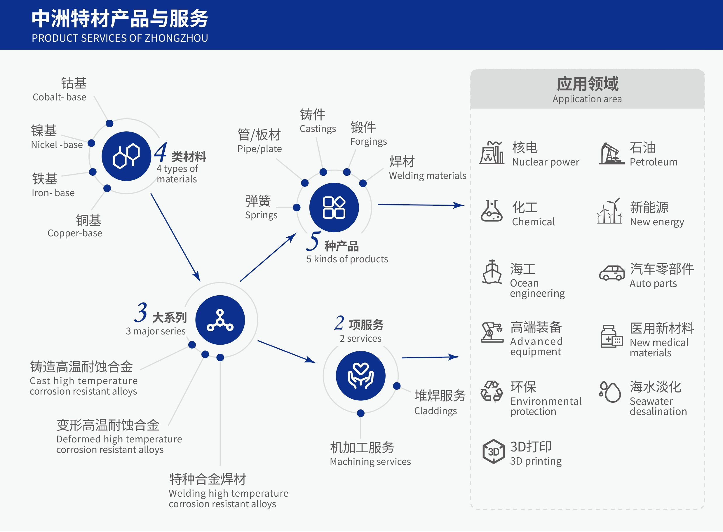 上海中洲特種合金材料股份有限公司,一直專業(yè)從事鈷基、鎳基、鐵基、銅基等高溫耐蝕合金材料及制品的研發(fā)、生產和銷售,是我國高溫合金領域產業(yè)鏈完整、生產種類齊全、認證資質完善的領先企業(yè)之一。